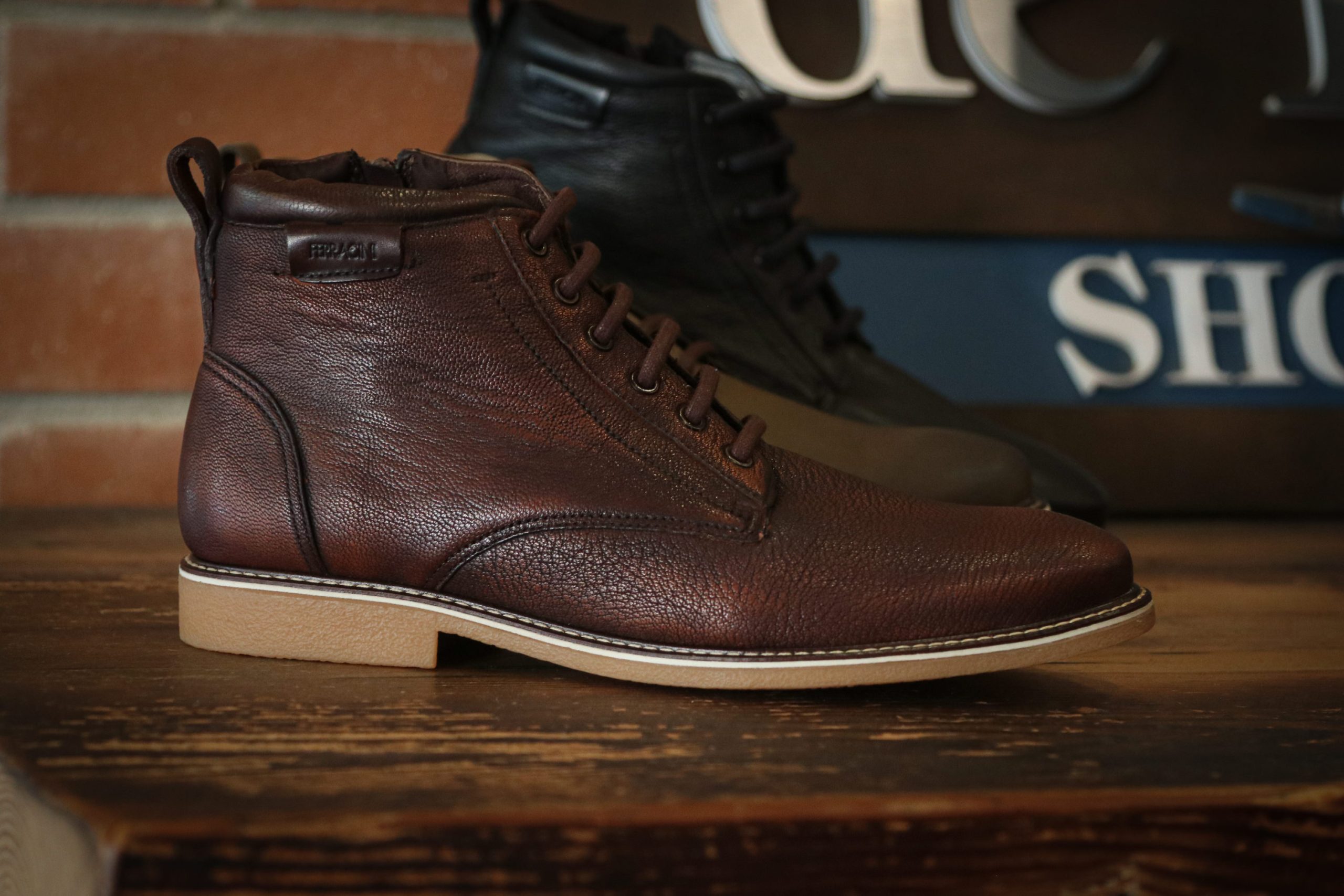 Introducing this versatile men’s shoe, available in soft black or brown leather. These side zip/lace-up Boots feature stitched soles for durability and are crafted with authentic Ferracini quality.