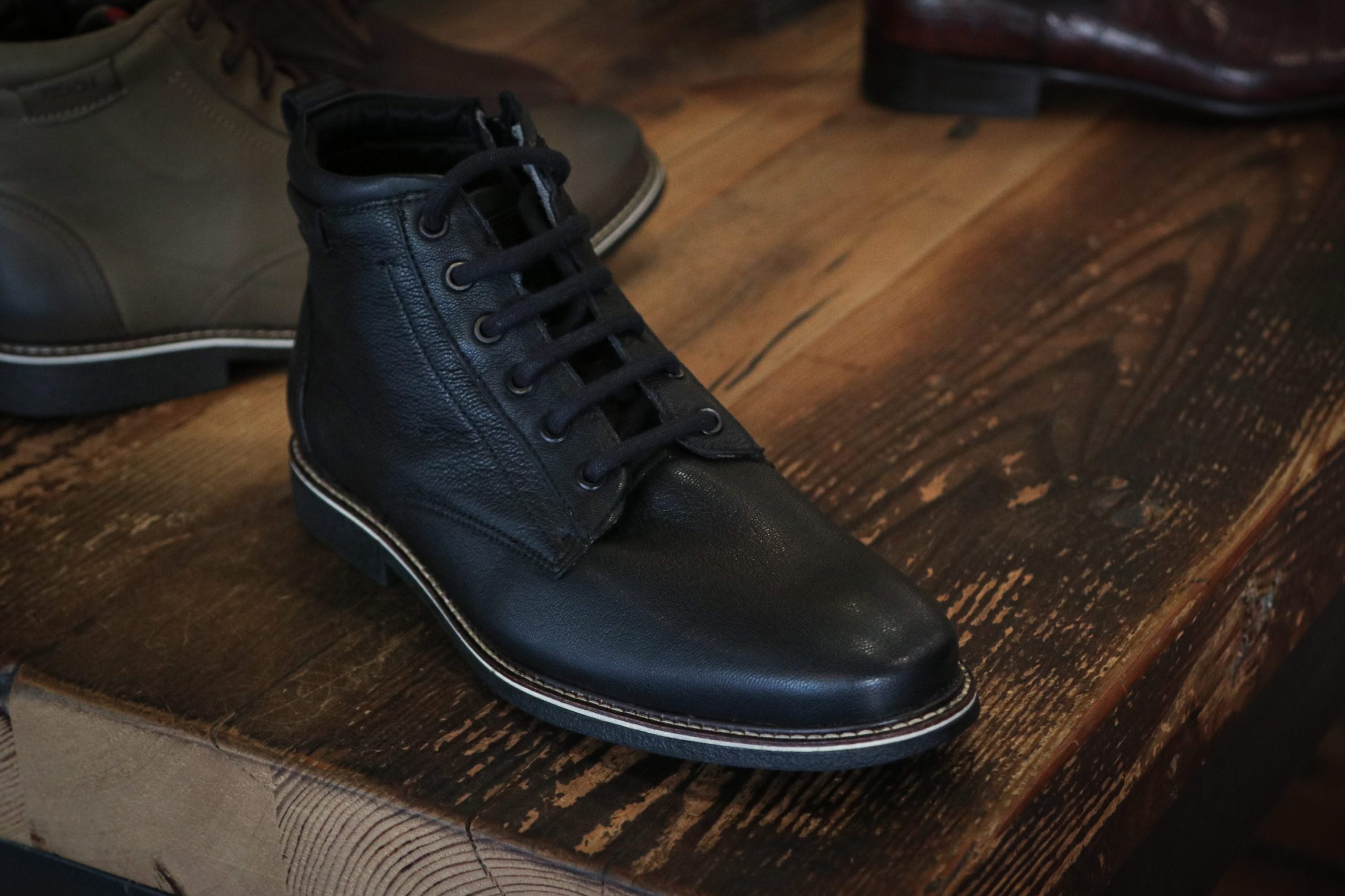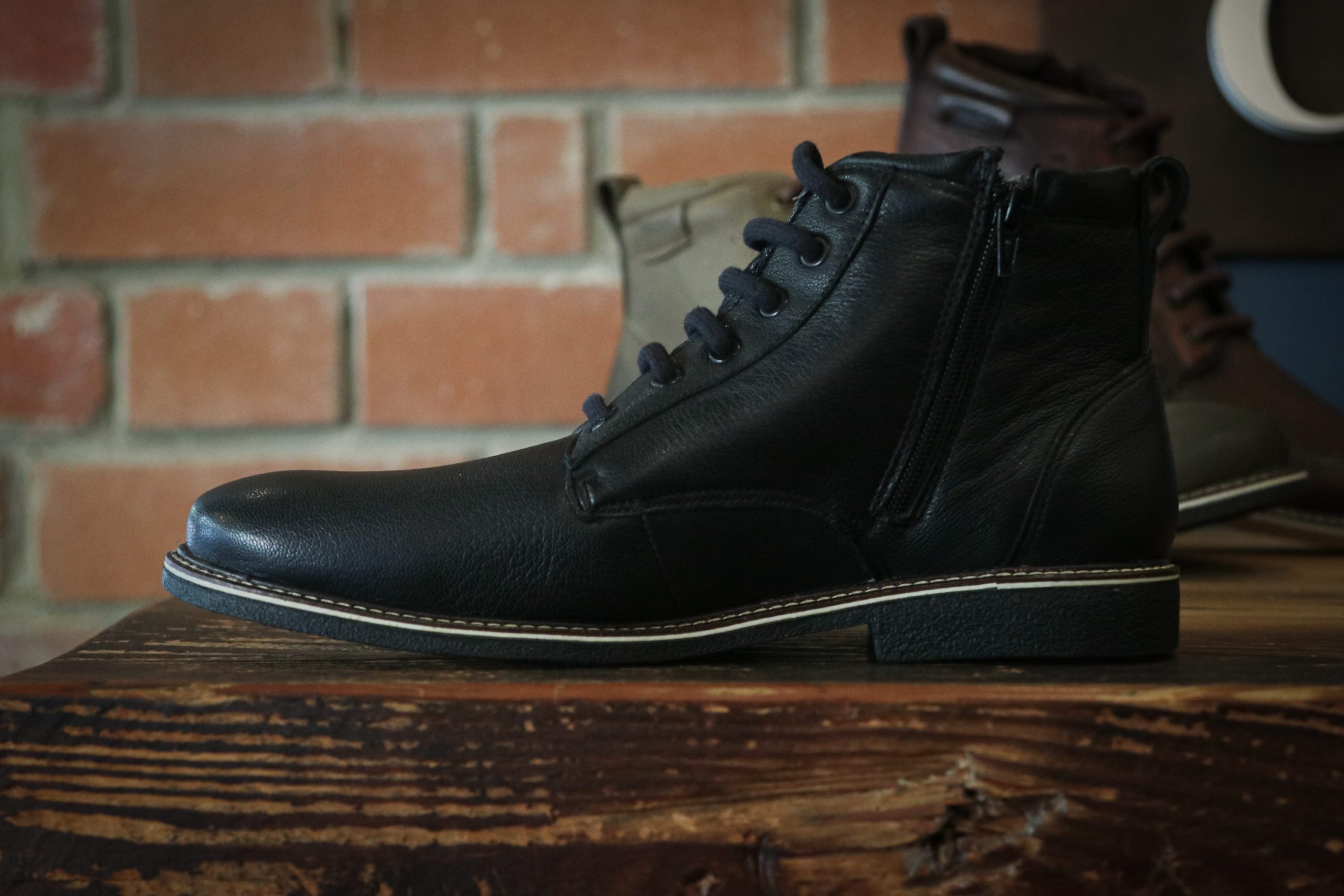Rubber sole, leather upper with inside zipper casual boot.